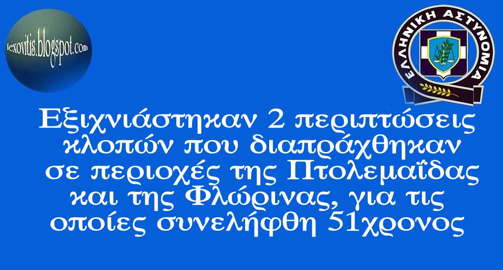 Εξιχνιάστηκαν, ύστερα από μεθοδική έρευνα των αστυνομικών του Τμήματος Ασφάλειας Εορδαίας δύο (2) περιπτώσεις κλοπών που