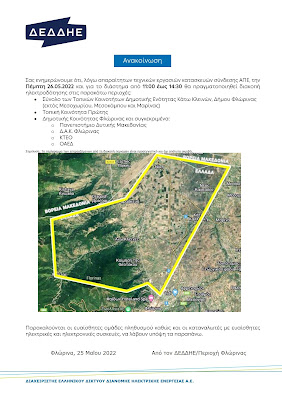 Προγραμματισμένη Διακοπή Ηλεκτροδότησης σε Τ.Κ> του δήμου Φλώρινας